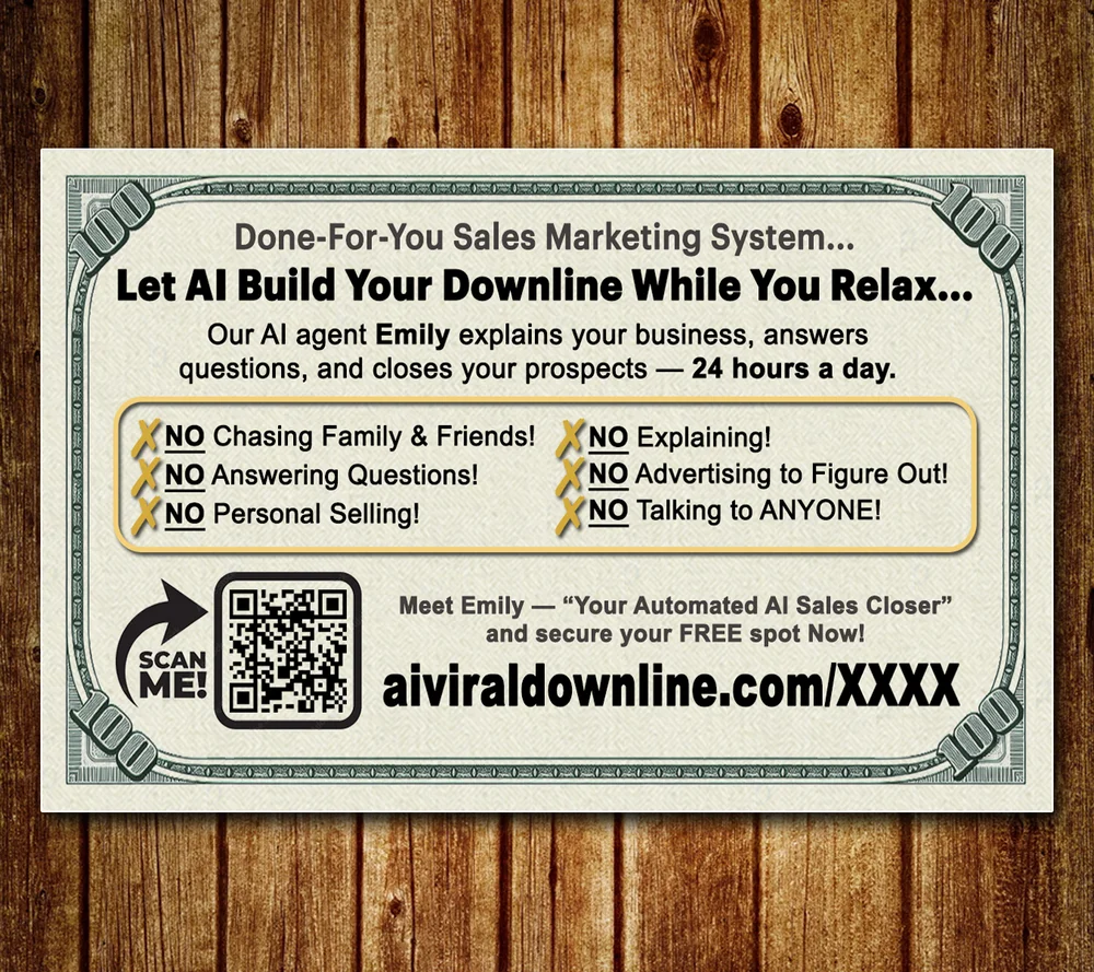 Let AI build your downline while you relax with the ultimate hands-free, offline recruitment tool that does all the explaining and closing for you.